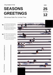 You can use a unique perspective as the theme of the poster, and use a rare perspective to increase the uniqueness of the poster, so that the audience can see things from a new perspective. This is a “Seasons Greetings Christmas Sale Poster” template, it is a Christmas sale poster, but it has not any Christmas element, it has a unique perspective photo and unique content, at the heart of its decoration is “simple but not simple”, designers can bring ordinary “placement” and “stacking” to life.