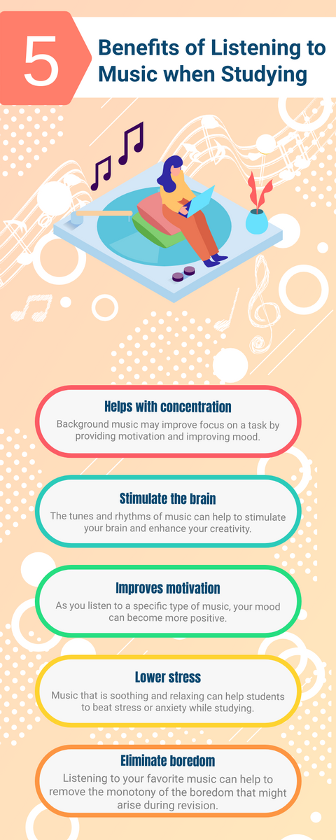 This article showcases an informative and visually appealing infographic designed with Visual Paradigm Online. The theme of the infographic is “5 Benefits of Listening to Music when Studying Infographic.” The design features a clean and modern layout with a bold color palette that draws attention to important information. The graphic is designed to be easily customizable to suit the needs of any business or organization.