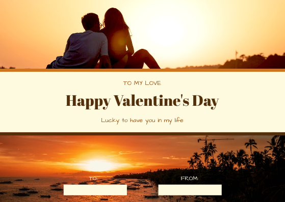 (Orange Sunset Photo Valentines Day Gift Card – Edit now)