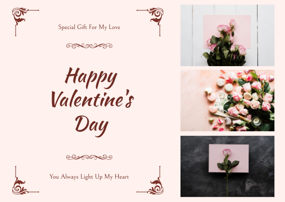(Pink Floral Photos Happy Valentines Day Gift Card- Edit now)