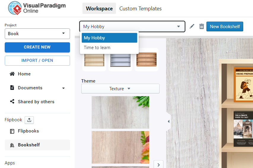 First, go to My Bookshelf in our workspace and choose the bookshelf we want to edit.