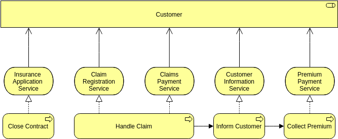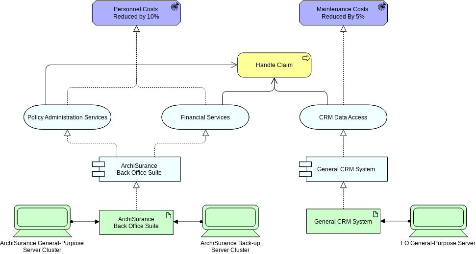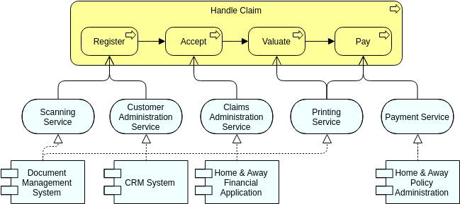 | Elements | Application component/collaboration, Application interface, Application process/function/interaction, Application event, Application service, Data object, System software, Technology interface, Path, Technology process/function/interaction, Technology service, Artifact |