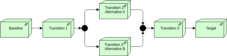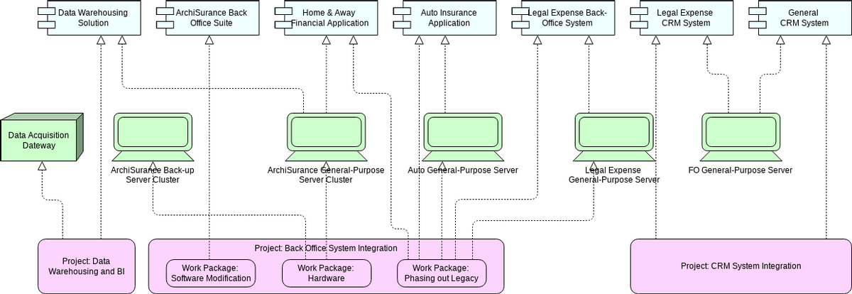 The figure below shows an ArchiMate diagram drawn under the Implementation and Migration Viewpoint.