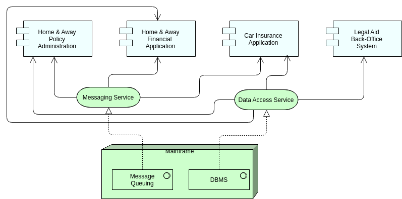 The figure below shows an ArchiMate diagram drawn under the Application Cooperation Viewpoint.