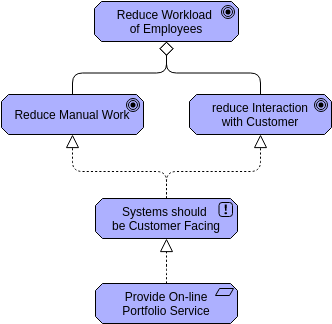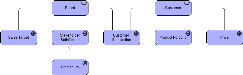 The figure below shows an ArchiMate diagram drawn under the Goal Realization Viewpoint.