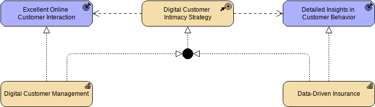 The figure below shows an ArchiMate diagram drawn under the Strategy Viewpoint.
