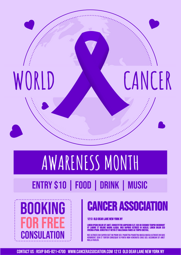 “Breast Cancer Awareness Poster” is a beautifully designed poster created with Visual Paradigm Online, an all-in-one online poster maker tool that helps businesses and organizations to create high-quality posters in a matter of minutes. The poster is designed in the color purple, symbolizing the fight against breast cancer, with a ribbon illustration to raise awareness of the cause. The Earth illustration in the background represents the impact of the disease globally.