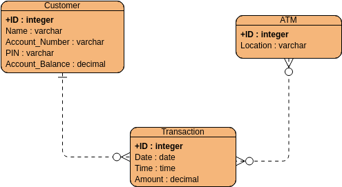 Suppose we are designing a database for an automated teller machine (ATM) system. The database needs to track details such as the customer’s name, account number, PIN, and account balance. In addition, we want to track the location of the ATM machines and which transactions have been performed at each machine.