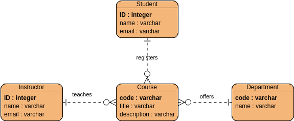 To illustrate ER modeling, let’s consider an example of a university course registration system. The system has the following entities: student, course, instructor, and department. The relationships between these entities are as follows: