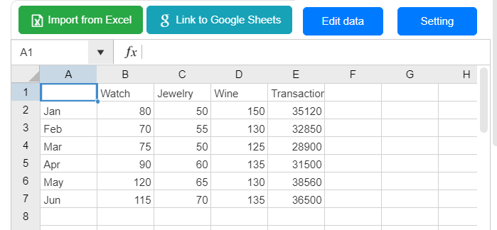 We can customize the data by editing the spreadsheet under Panel-Chart.