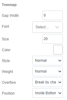 Under Position, we can select the position of the word wrap shown in the Treemap. By default, the caption will show at the middle of the cell. We can choose to place the word in place that fit the design and also the composition of the rectangles.