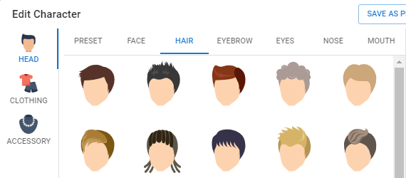 - Adjust Facial Features: Visual Paradigm allows you to specify various facial features such as face shape, hairstyle, eyebrows, eyes, nose, and mouth. Customize these features to give your character a unique look that suits your video’s narrative.
