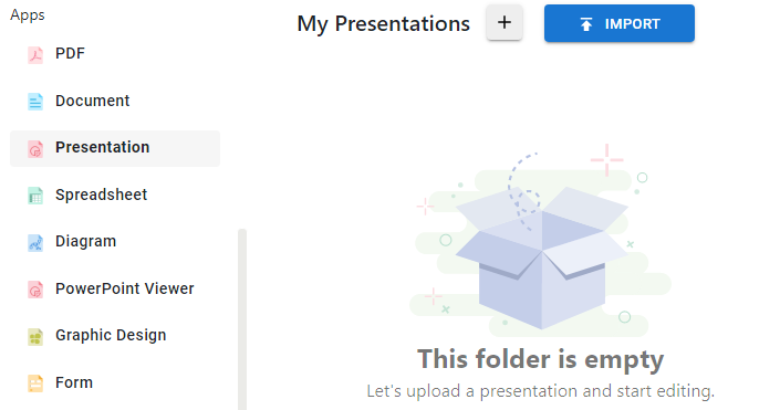 In our workspace, upload your PowerPoint under Apps – Presentation. We will jump to the presentation maker, and then start viewing and editing our PowerPoint.