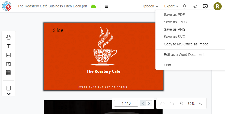 We can further convert the PDF to other formats using the PDF Converter in VP Online to suit your specific needs in different scenarios. This flexibility allows you to easily modify and adapt your presentation content as required.