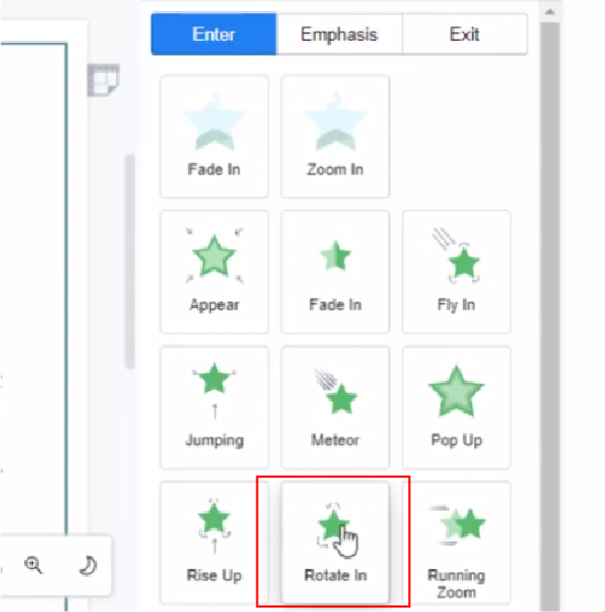 2. View the “animate this object” panel and try out different kinds of animation effect