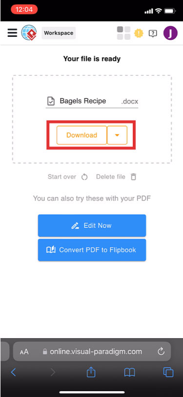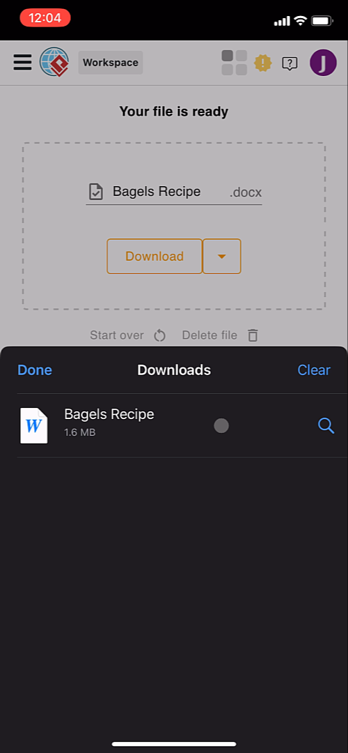 After conversion, download the Word file to your iPhone.