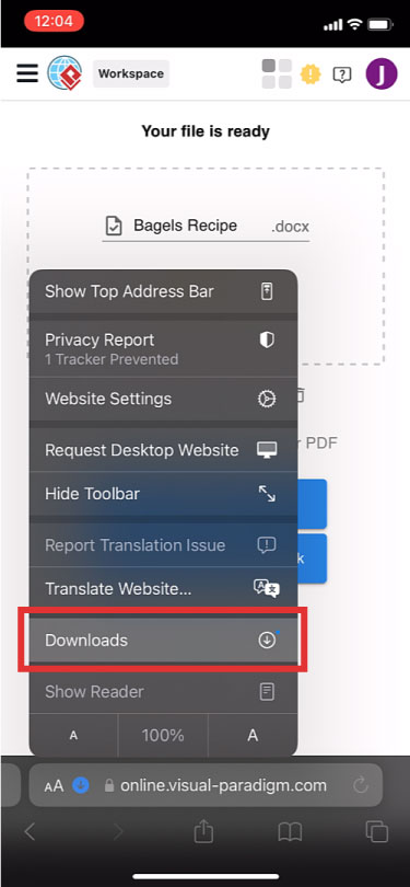 After conversion, download the Word file to your iPhone.