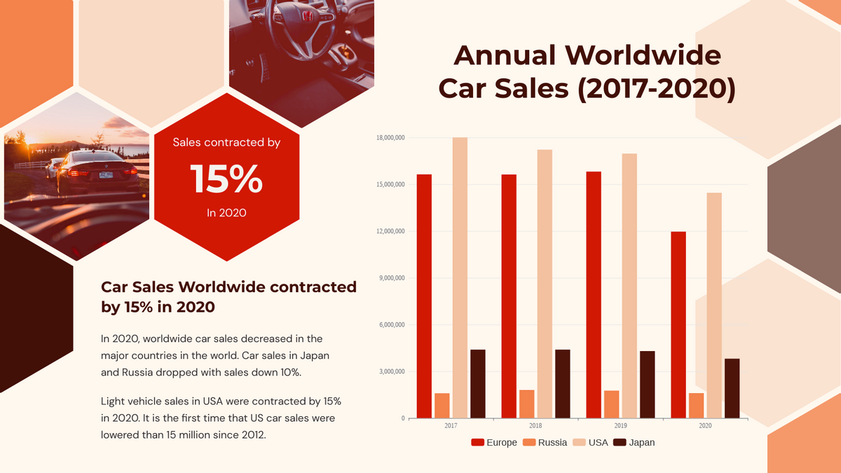(Annual Worldwide Car Sales (2017-2020) | 100% Stacked Column Chart)