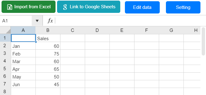 You can edit the data one by one, or import the existing data from Excel or Google Sheet.