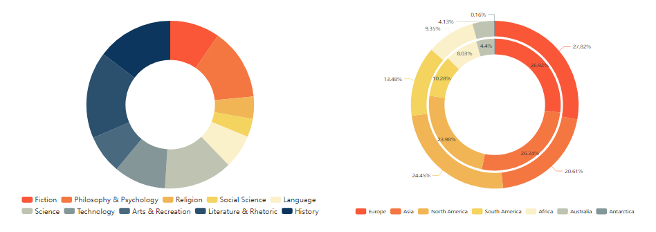 As doughnut chart is used to present the relationship between the part and the whole, it is commonly used when we want to compare the percentages of different parts, and also the case that all data are included in the same group.
