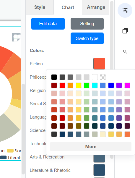 Moreover, we can customize the legend, label, title and other elements of the chart in the same panel.