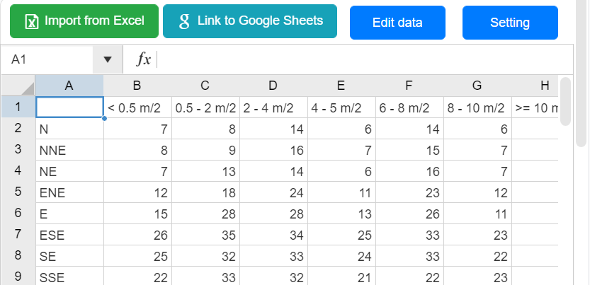 We can also choose to change the data by importing from Excel or linking to Google Sheet.