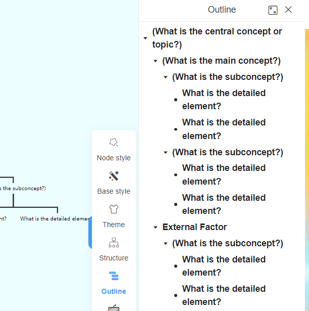 - Step 5: Editing via Outline Visual Paradigm Smart Board offers an outline feature that allows you to make changes to the content of the diagram. Any modifications made via the outline will automatically reflect on the concept map, ensuring consistency across the board.