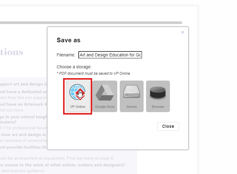 After finishing editing the PDF, you can now save the file and export it as a new PDF. You can click on the save button and select VP Online. Your editing file will be saved in your account in Visual Paradigm Online.