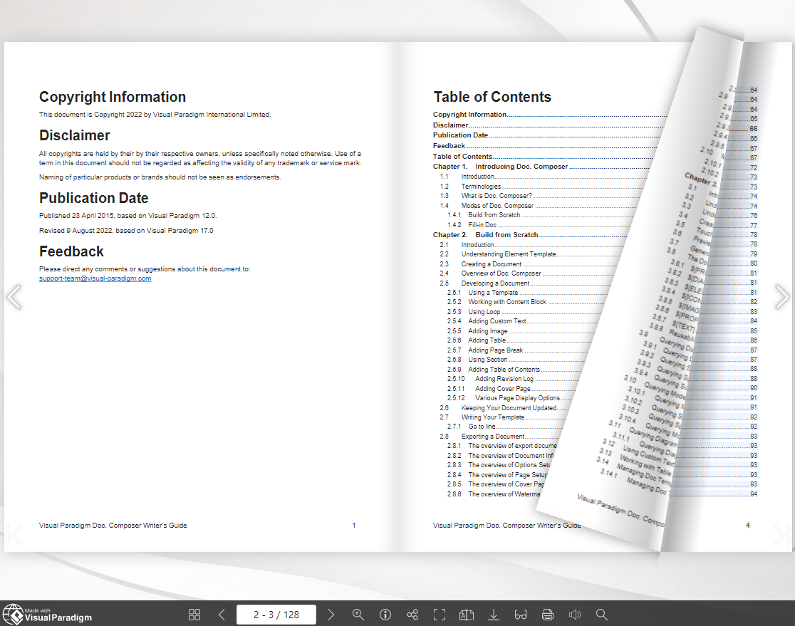 Share as flipbook: Some powerful online free PDF editors, such as Visual Paradigm Online, allow you to convert your edited document into an interactive flipbook format. A flipbook is a digital publication that looks like a physical book or magazine, with pages that can be flipped through using a mouse or touch screen. This can be a great way to share your content with others, especially if it contains a lot of visual elements or if you want to make it more engaging and interactive. Flipbooks can be easily shared via email, social media, or embedded into a website or blog.