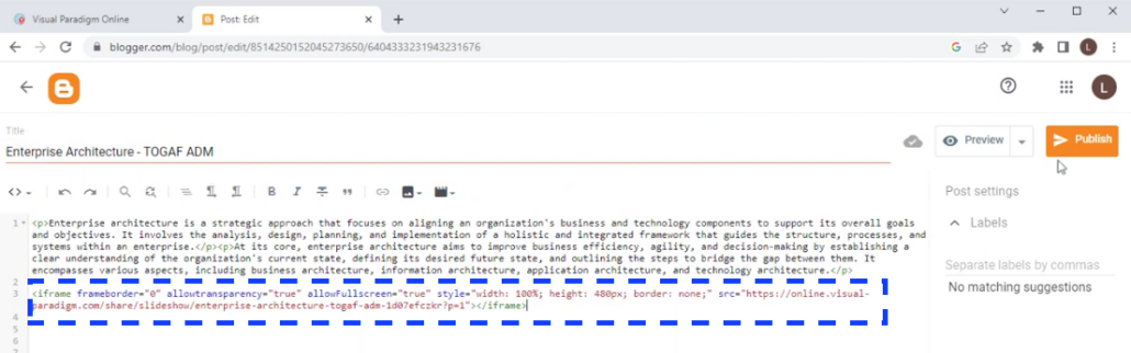 How to embed exported presentation video to Blogger