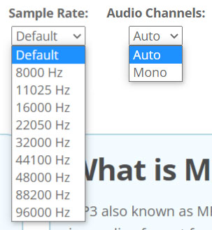 Upload the video(mp4) to the page, we can then set the sample rate and also the audio channels.