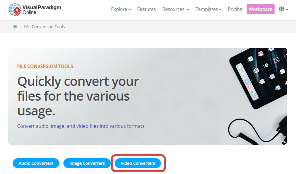 In VP Online, go to Explore -> File Converters.