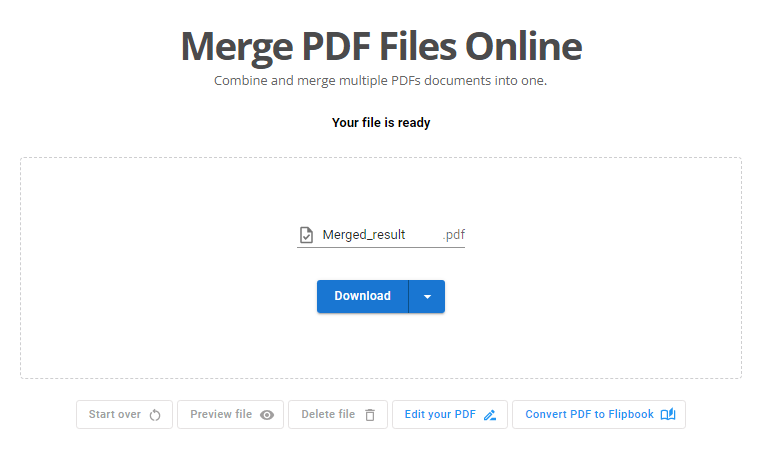 - Flexibility: Online PDF merging tools usually allow you to select, arrange and merge PDF files according to your specific needs, such as the page order, giving you the flexibility to create a customized document.