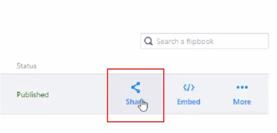 - Hover over your flipbook and select “share”