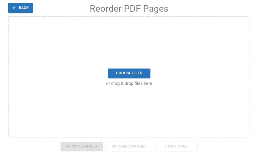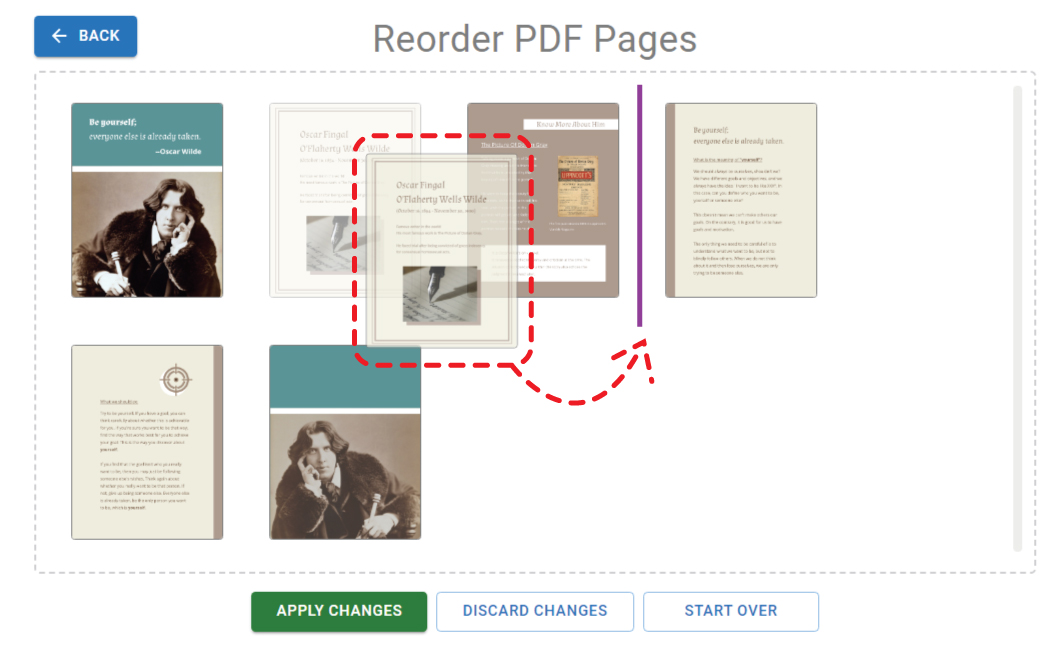 All pages on PDF are listed on the page, we can then drag and drop to reorder them.