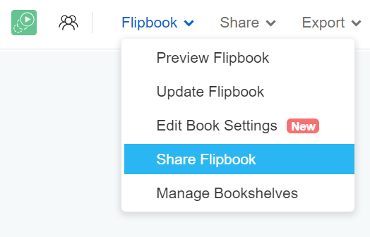 - Publish the flipbook: Once your flipbook is complete, select “Flipbook > Share Flipbook” from the top right corner of the screen.