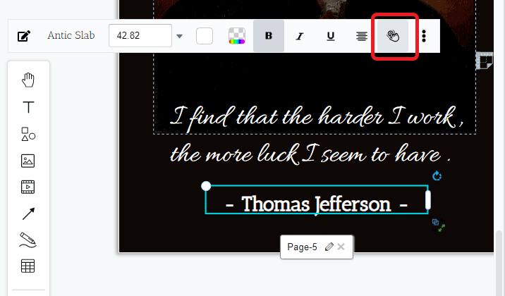 In the editor, we can select the item, such as image or text, and then click the “Interaction” button on the tool bar on top.