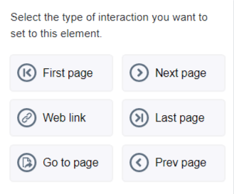 After that, we can then see there are different kinds of interaction that we can add to our flipbook: