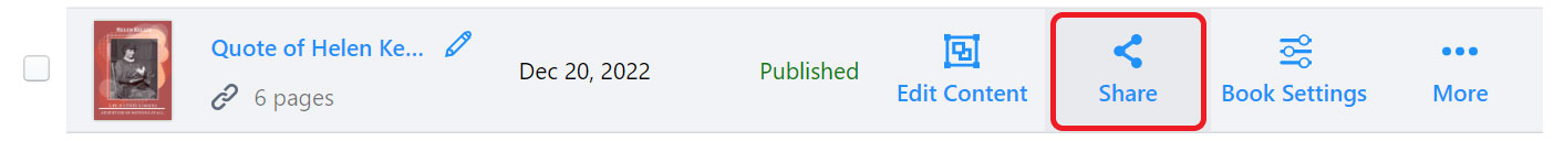 After that, place the mouse over that flipbook and click Share button.