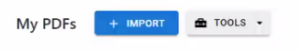 - After login into your Visual Paradigm Online workspace, Go to Dashboard and select Apps, PDF, to press the Import button to import your PDF file.