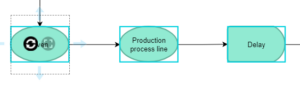 - Select a new element from the palette, and drag it over one of the selected element in your diagram.
