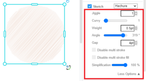 After selecting a graphical element, you can go to Format Panel, Style, to click the “Sketch” button to apply a sketch effect to the artwork.