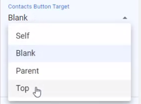 - Specify the contacts link to be open in the current window, or a new browser window on the Contacts Button Target panel.