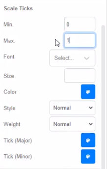 - Look for the \”Scale Ticks\” section within the \”Chart\” tab. Here, you will find the fields to input the minimum and maximum values for your gauge chart.