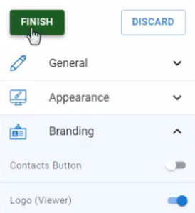 2. Select Branding, you can then switch on, or off the display of the brand logo, under the Logo-Viewer option. You can upload your brand logo image file when this option is switched on.