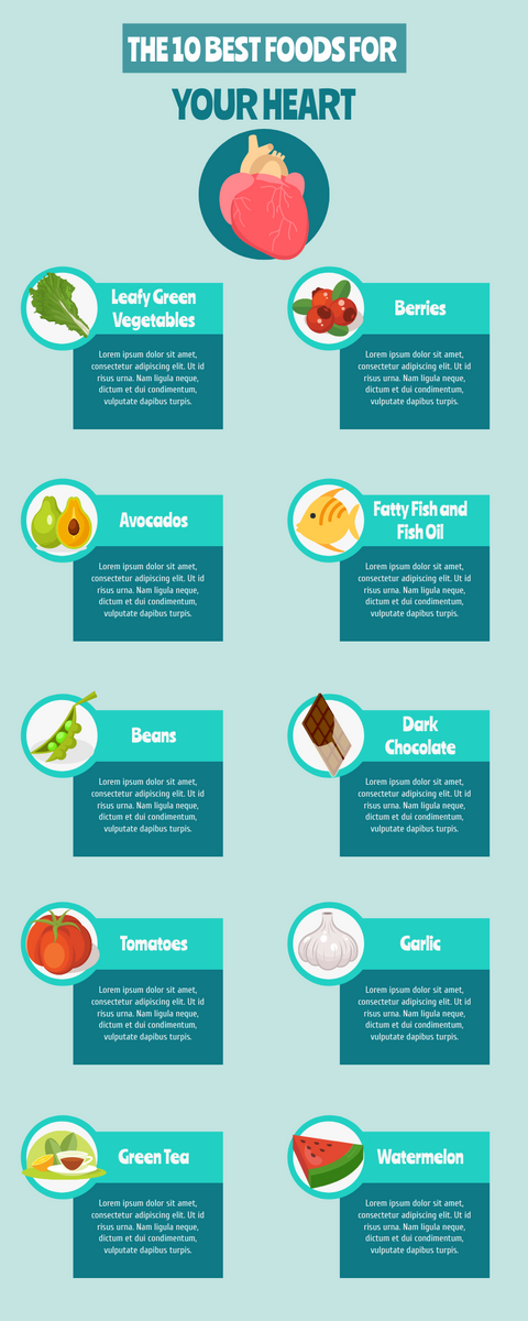 For a wealth of infographic design templates, including the “The 10 Best Food For Your Heart Infographic”, check out Visual Paradigm Online’s graphic design template library: https://online.visual-paradigm.com/infoart/templates/
