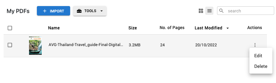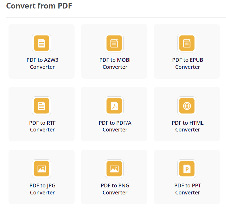Tools are divided into 3 groups, including: PDF Editing Tools, Convert from PDF and Convert to PDF.