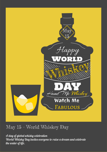 Celebrate the love for whiskey with this stunning “Whiskey Day Poster”. The design showcases a whiskey glass filled to the brim with golden liquid and a bottle of whiskey in the background. The text reads “Happy World Whiskey Day” in bold and attractive font, making it perfect for bars, restaurants, or whiskey shops.
